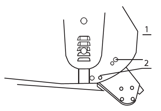 When adjusting the working height, loosen screw (1), remove screw (2) on both sides; The roller height (see drawing) can be adjusted by aligning the selected hole in the roller support bracket at position 2. The lowest hole is the highest working height; put the screw (2) into the selected hole; tighten screw (1) and screw (2).