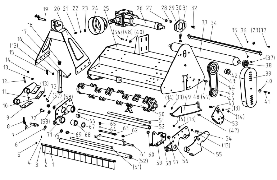 When the Flail mower has been set up with the required tolerances: operate the Flail mower with tractor in low range and the PTO delivering 540 RPM.