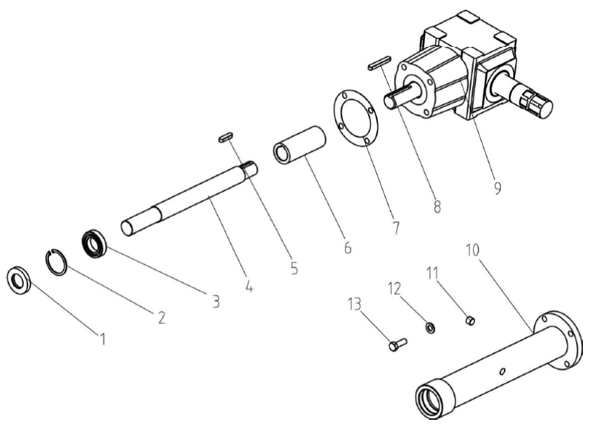 The PTO shaft is designed to telescope to allow for dimensional changes as the machine goes through its operating range. A tubular guard encloses the driving components and is designed to turn relative to the driving components. The shaft should telescope easily and the guard turn freely on the shaft at all times. Annual disassembly, cleaning and lubrication is recommended to insure that all components function as intended. To maintain the shaft, follow this procedure: